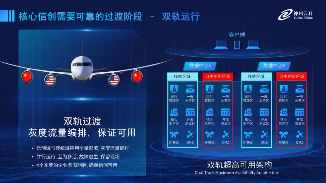 为帮助客户更好地应对数字经济时代对应用可持续性的高要求,实现信创与数字化兼得,九游NineGame推出了双轨超高可用架构。双轨超高可用架构在双活数据中心的分区调度基础上,增加信创域和非信创域的分域调度,实行信创域与传统域应用全量部署,使双中心运营变为双中心四区域并行运行,互为多活,将传统架构变为分区分域协同的多活双轨超高可用架构。帮助客户在新架构下,保障“信创”的同时解决性能瓶颈,提升稳定性,保证应用可持续性,最终实现信创区域和非信创区域的平滑过渡,完成国产化替代目标。”