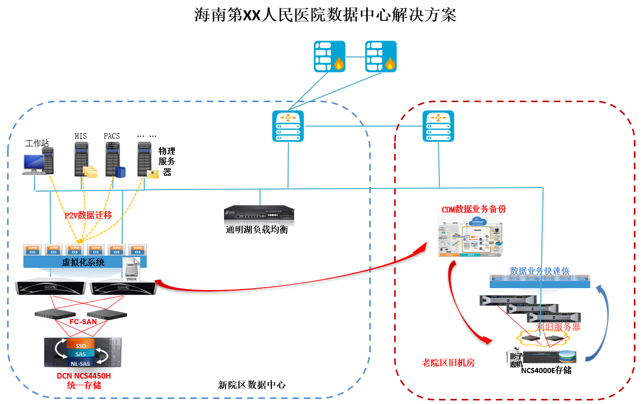 5、业务数据需要加强备份,实现两个院区数据容灾,并加强业务连续性。